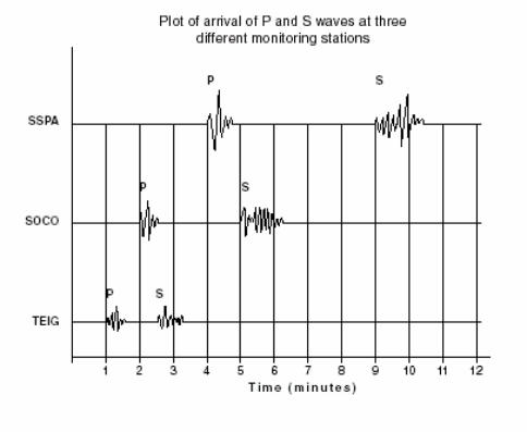 upon the distance of the monitoring station from the epicentre. To locate the
