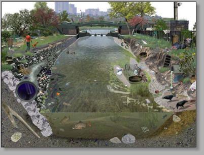 A polluted river draining an