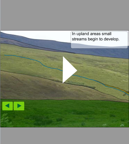 When studying rivers a river is often divided into 3 main sections, the upper course, middle course and lower course. In each of these sections the river shows distinctive landforms as a result of the different erosional and depositional processes at work. The upper course is the section of the river closest to its source; the lower course is the section nearest to its mouth.At this BBC site you can watch clips illustrating the journey of a river from source to mouth and showing the landforms developed in the upper, middle and lower sections of the river: