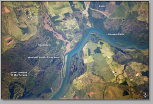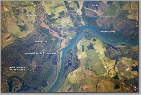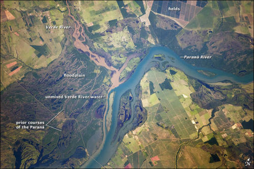 Paraná River floodplain at its confluence with the Verde River, BrazilCredit: NASA Astronaught image