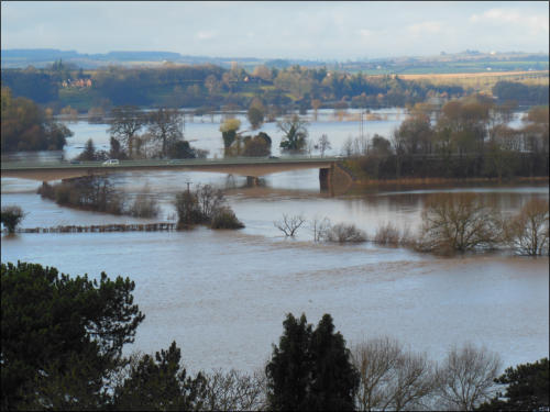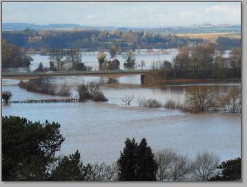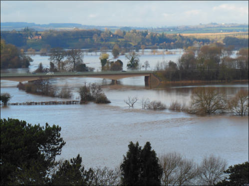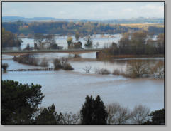Flooding near Ross-on-Wye caused by the rise of the river level in the River Wye Credit: M Williams