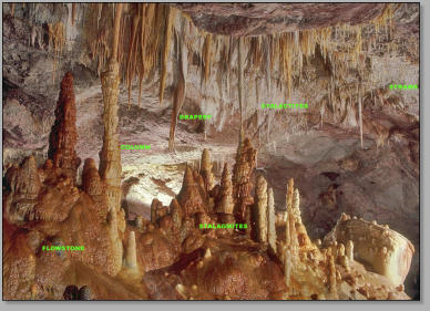 The six most common speleothems (mineral deposits formed from groundwater within underground caverns). Credit: Dave Bunnell