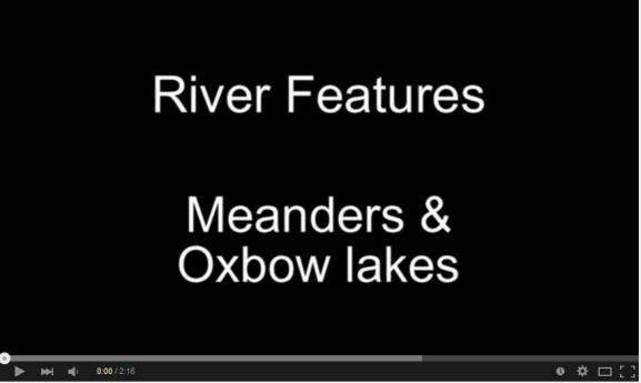 A meander is a bend in a river and a point bar is the crescent-shaped depositional feature made of alluvium that collects on the inside bend of the river. An ox bow lake is a U-shaped lake created when a meander is cut off from the main part of the riverThere is a helpful clip at this site explaining how meanders and oxbow lakes form:https://www.youtube.com/watch?v=4qKS_Nk7UmY