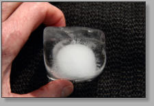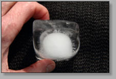 Frozen water in the form of an ice